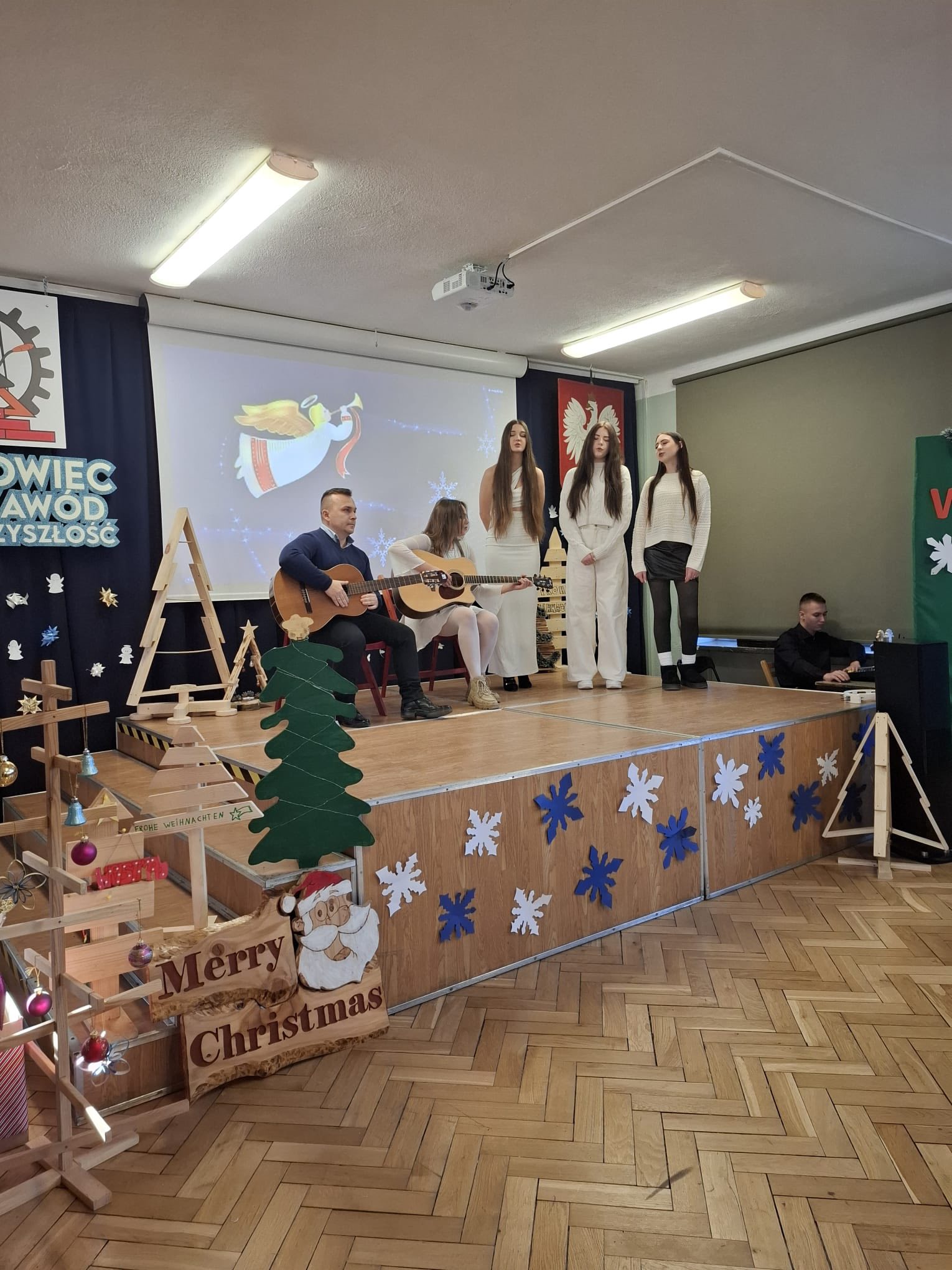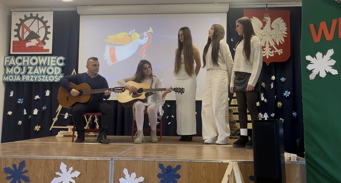 Dziękujemy uczniom klas technikum oraz klasom branżowym za pracę włożoną w przygotowanie świątecznego apelu. Uczniowie z klas I aT, IIaT, IIIbB, IIIaT i IIIcT spisali się na 6! Wasza energia, talent i współpraca sprawiły, że to wydarzenie miało zachwycający i wzruszający charakter. Szczególne podziękowania kierujemy do nauczycieli: Pani Marii Wachowskiej - za kompleksową opiekę nad apelem, stworzenie pięknego scenariusza, za twórczą pracę z uczniami przy wykonaniu świątecznych kart z życzeniami i dekoracji oraz za wykonanie nostalgicznego utworu „Kolęda dla nieobecnych”. Upamiętniła tym wykonaniem wszystkich uczniów i pracowników ZSBT, których już z nami nie ma. Dzięki Pani wizji i organizacji apel nabrał głębi i świątecznego klimatu. Pani Anetty Dyraly - za opiekę nad scenariuszem, apelem, starania włożone w wystrój oraz przygotowanie wraz z uczennicą Kariną Gierak oraz jej teamem z klasy I aT i panią Marią Wachowską wyjątkowego i zachwycającego układu tanecznego „tańca aniołów”, który zachwycił symboliką, ruchem i niezwykłą wrażliwością artystyczną. Pani Kingi Włodarczyk - za inspirującą pracę z uczniami przy tworzeniu prezentacji ze świątecznych kart wykonanych z naturalnych materiałów i z recyklingu. Mogliśmy oglądać prace, które połączyła kreatywność, estetyka i ważne ekologiczne przesłanie. Pani Ilony Zakrzewskiej Frączek - za profesjonalne i pełne zaangażowania przygotowanie klasy branżowej do pięknego występu wokalnego połączonego z ruchem scenicznym, który wniósł do apelu wiele pozytywnych emocji i świątecznego ciepła oraz za opracowanie materiału filmowego i świątecznego contentu. Pana Macieja Samoleja - za wspólne wystąpienie z uczniami i grę na gitarze, które nadały wydarzeniu autentyczności i nastroju. Pani Darii Warmbier-Jurek za pomoc w dekoracjach i wyborze kart świątecznych, które mogliśmy podziwiać na prezentacji multimedialnej. Pani Marioli Szczęsnej za opiekę nad uczniami, którzy wykonali własnoręczne prezenty bożonarodzeniowe. Ten gest sprawił, że obdarowani poczuli się naprawdę wyjątkowo.